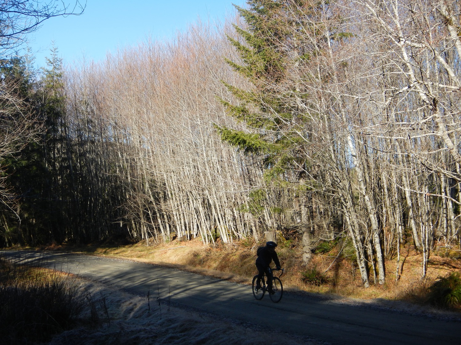 While D. engaged the younger about hunting, TLRC talked about the demise of modern youth with the older, a retired teacher. The usual questions about biking gear and gears and how steep of a hill could be climbed on the bikes followed. The hunters also told TLRC and D. that they had seen bicycle tracks up ahead, theirs from last week, welcome news. The parting shot of the elder was to TLRC: “How much did that bike cost?” TLRC avoided the question by pointing out that D. had built his bike, but the elder pressed the point. When TLRC told him the (admittedly obscene) estimate, the elder shouted “I knew it! I knew it!”, and all parted ways, warmed by the encounter.