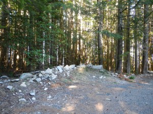 It was a truly beautiful day. No tights. The air went from chilly to spring-like warmth and back again. Ice in the shadows, summertime out of them. Big doings since TLRC’s last trip here. A new logging setup pulling out what was left of the trees at the top of Grant Cr. A lot of new, heavy (4″-minus) rock all around, mostly on new landings, indicating that Savage Cr. is next.