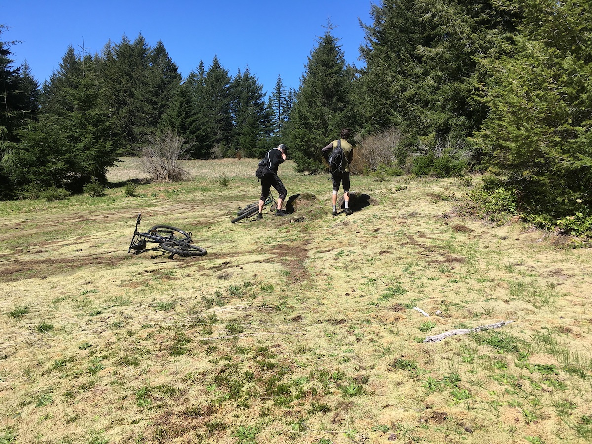On painfully clear and cool spring day, TLRC, Gnat and B went out to pedal this steep adventurous ride. A stiff climb from the Luckiamute leads up to the Mary’s River divide. Just as the road starts to drop down, a gate on the right blocks a road that traverses along across the head of the Mary’s River drainage. This gets obscure, but keep the faith.