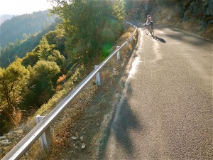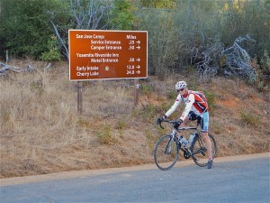 The Logging Road Cyclist on occasion finds himself in Oakdale, in California’s Central Valley. It is his good fortune to be acquainted there with two rabid cyclists who share his penchant for painful riding. From time to time the RC’s (RC1 and RC2) spare TLRC and take him on a pleasant ride that delights without requiring at least 5000′ of climbing. This Hetch Hetchy ride is one, and TLRC heartily recommends it to anyone who finds themselves with a bicycle in the vicinity of Yosemite. The out-and-back ride (gpx) is all
